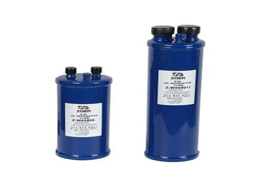 油分離器,其作用是將制冷壓縮機(jī)排出的高壓蒸汽中的潤(rùn)滑油進(jìn)行分離,以保證裝置安全高效地運(yùn)行。根據(jù)降低氣流速度和改變氣流方向的分油原理,使高壓蒸汽中的油粒在重力作用下得以分離。一般氣流速度在1m/s以下,就可將蒸汽中所含直徑在0.2mm以上的油粒分離出來(lái)。通常使用的油分離器有洗滌式、離心式、填料式和過(guò)濾式四種。
